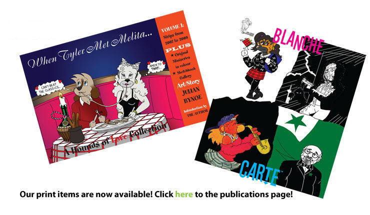 Since 1983, Snow Leopard ArtsEntertainment is a Canadian independent arts studio responsible for the creation of comics by its creator, Julian Bynoe, with such titles as Melody and Mandolin Rain Bruin (1993-2006),The Ashmeade Initiative (2006-11), M’Bock (1996-2013) and EU50 (2007-11) to current works with web-exclusive comics (Hounds of Love; Rogue Alliance) and physical print comics (Cranberry Pants; the Prodigies erotica series); plus other artworks upon commission.